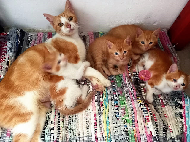 Die Mutter dieses Wurfs wurde angefahren, kurz nachdem sie an der Marina erschienen war, noch bevor sie fotografiert werden konnte. Sie starb auf dem Weg zum Tierarzt. Sie hinterlässt vier halbwüchsige Kinder,...